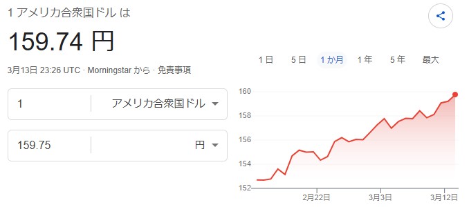 160ドル目前