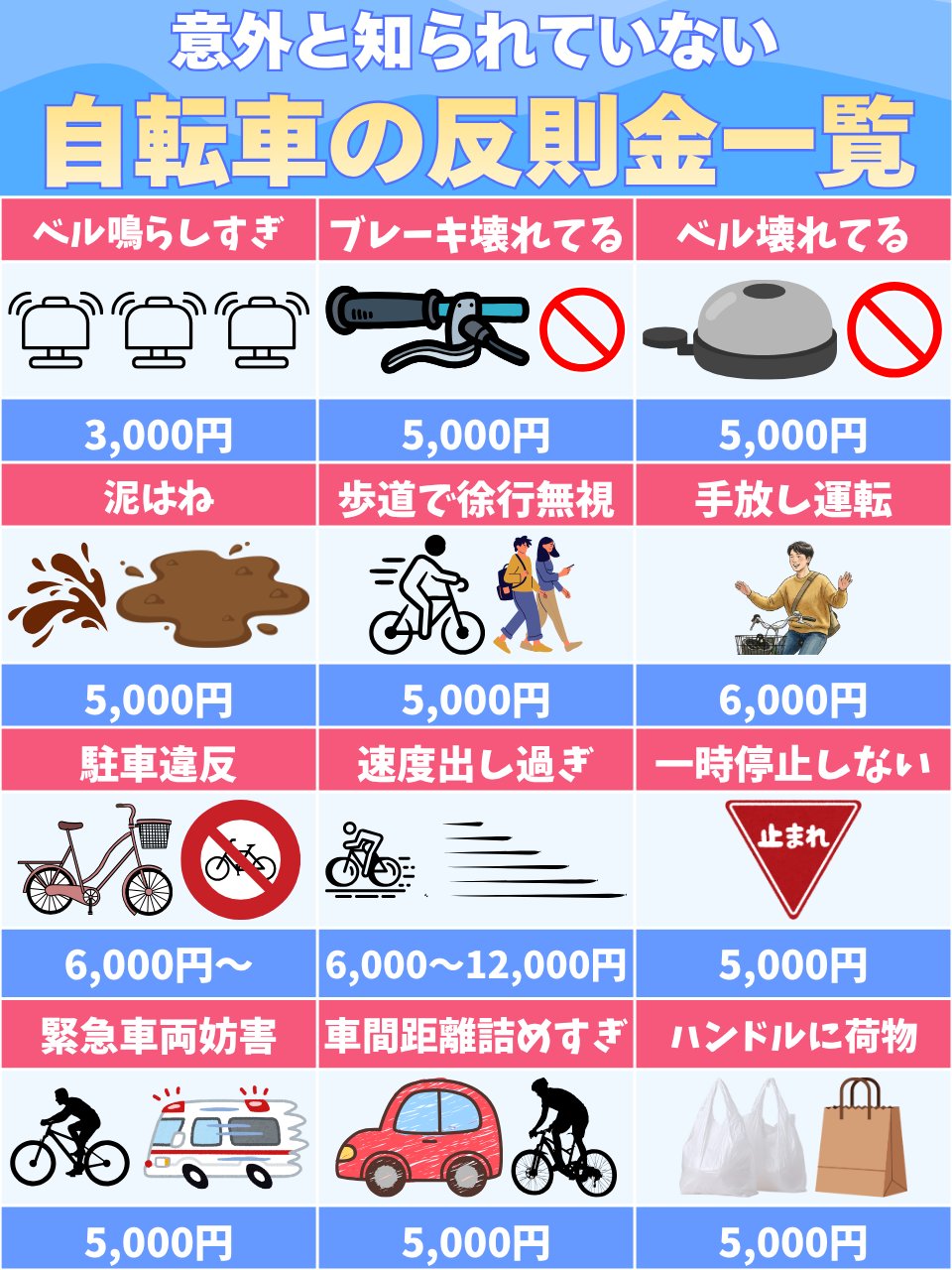 この中の項目のどれかが重複してたり悪質じゃないと反則切符切られないと思うぞ