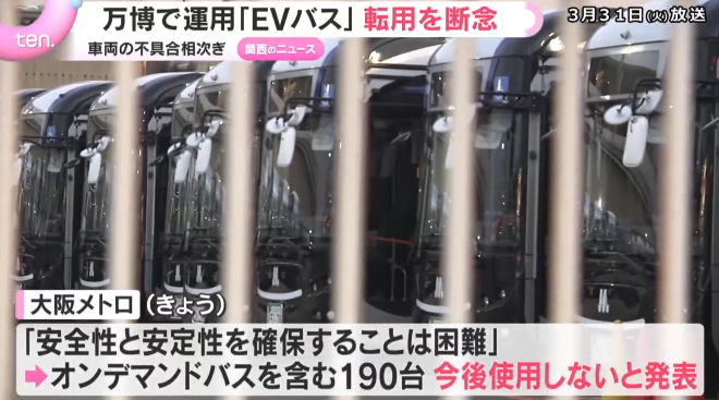 【これは酷い】大阪メトロ、万博のEVバス190台「今後使用せず」…昨年9月にハンドルが効かず事故 中国メーカーが製造