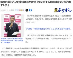 れいわの多ケ谷亮衆院議員が離党