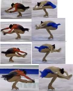 真央とキムヨナのシットスピン画像