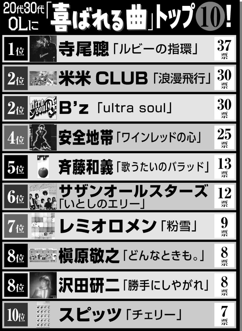 2位はB'zと米米CLUB 1位は