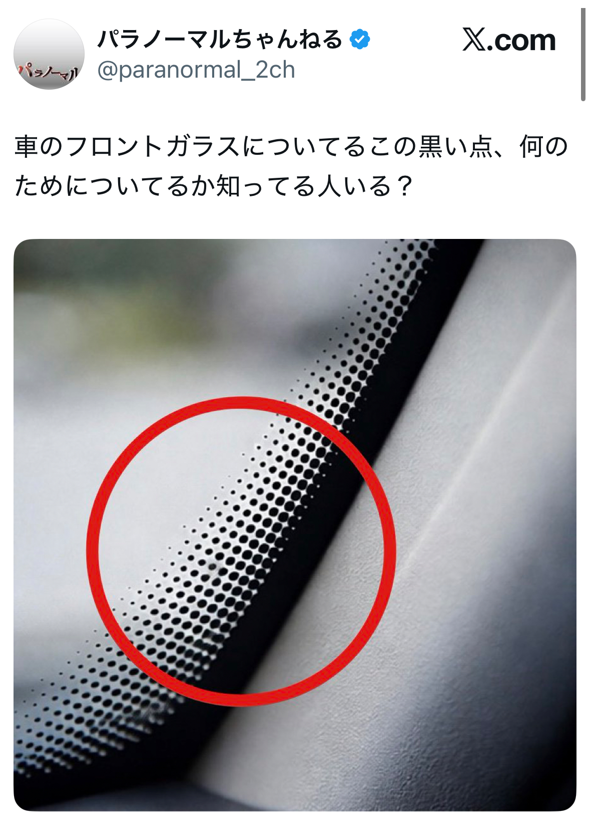 この黒い点々の正体は「センターバイザー」といい、運転中に太陽光からドライバーの目を守るものです。