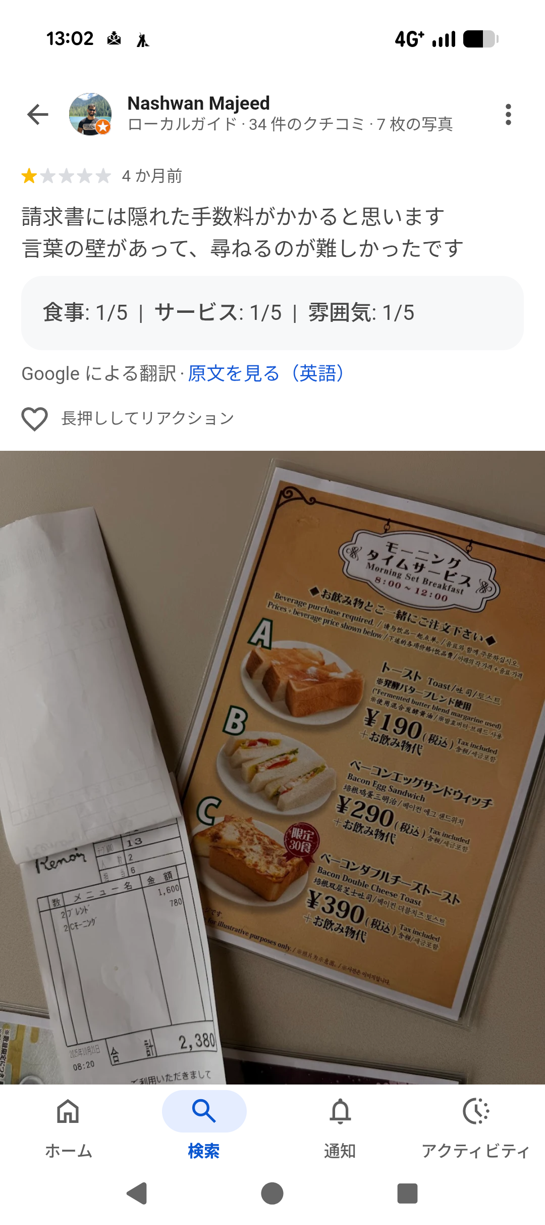 この外人モーニングだけで2400円近く取られててワロタ。