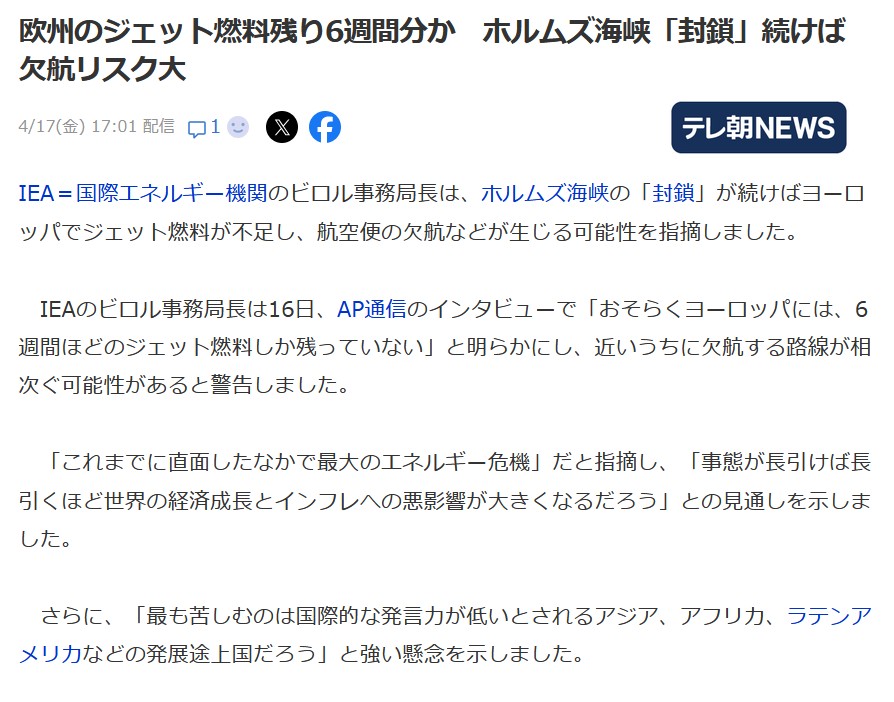あと6週間でジェット機が飛ばなくなる