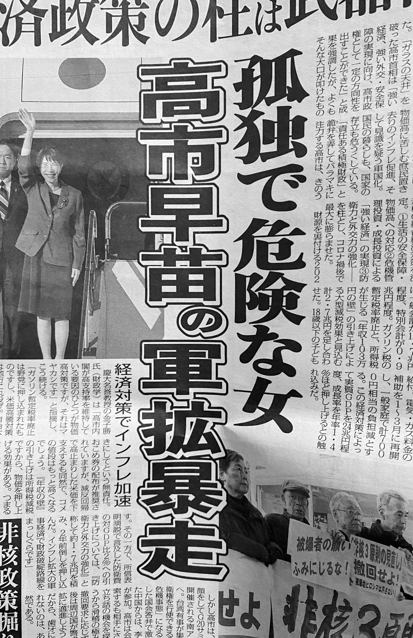 総理就任一ヶ月で「軍拡暴走」とまで書かれる総理って、