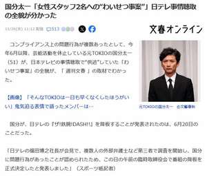 【文春砲】国分太一降板の原因は女性スタッフへのわいせつww