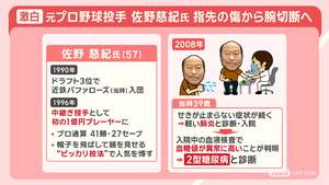 元プロ野球近鉄投手の佐野慈紀さん(56)は、長年患っていた糖尿病の合併症による感染症が悪化し、2024年5月に右腕(利き腕)の切断手術を受けました。指先の壊死が進行し、命を守るための苦渋の決断でした。現在は左投げでの復帰を目指し、チャレンジを続けています。