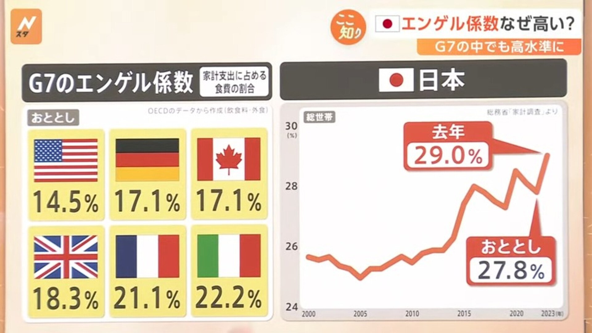 エンゲル係数はG7で1番高い
