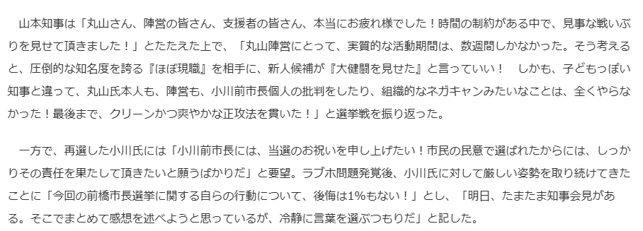 負けた瞬間に言い訳を始めた山本一太