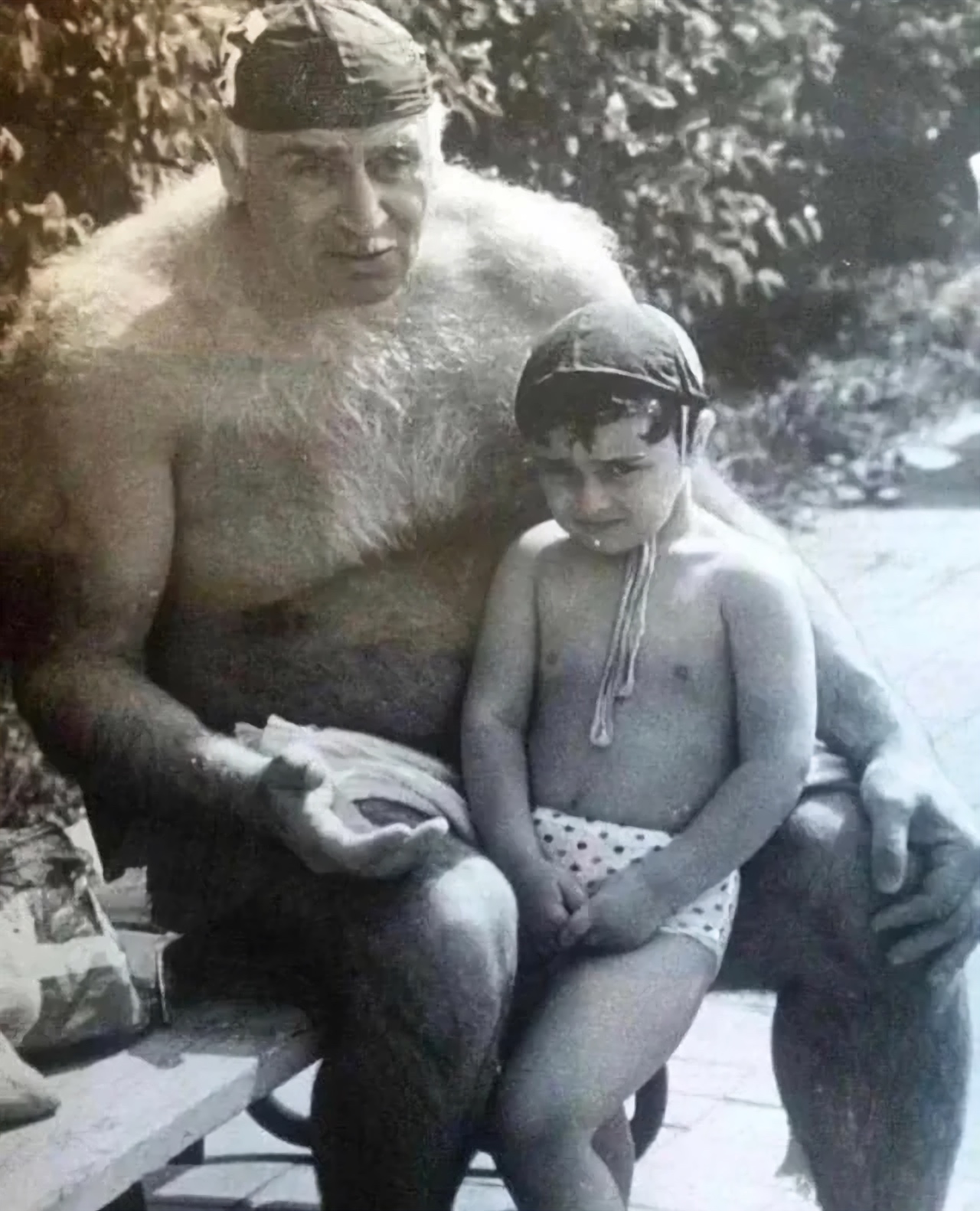 ペトレ・ムシュヴェニエラゼ(1929-2003)、ソビエトおよびグルジアの水球選手で、1952年、1956年、1960年のオリンピック大会においてソビエト連邦代表チームを代表しました。孫と一緒に写っています。