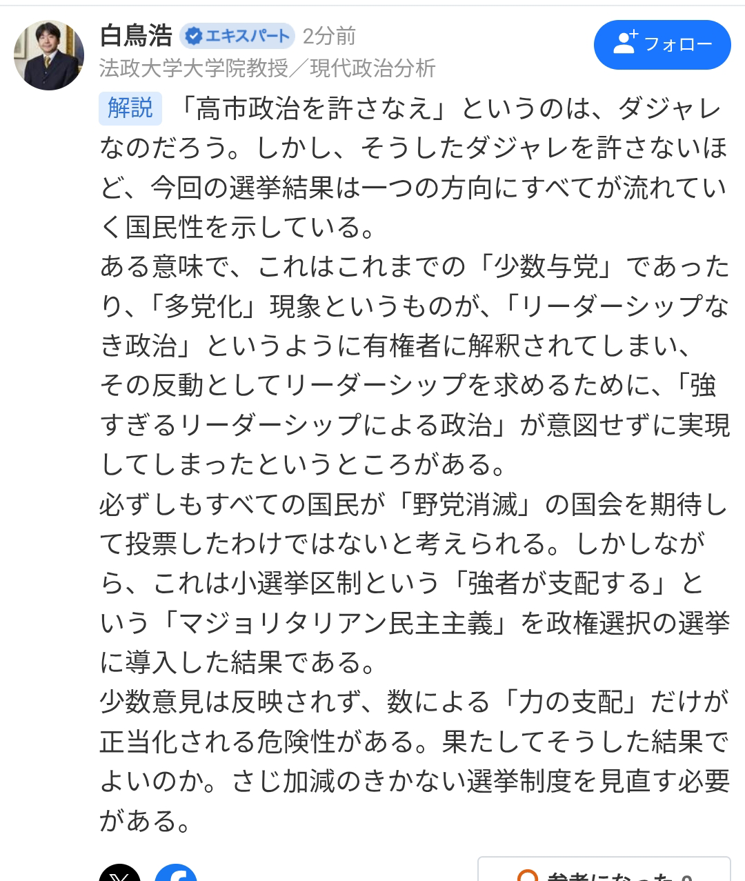 ヤフコメで有名な朝日の御用学者