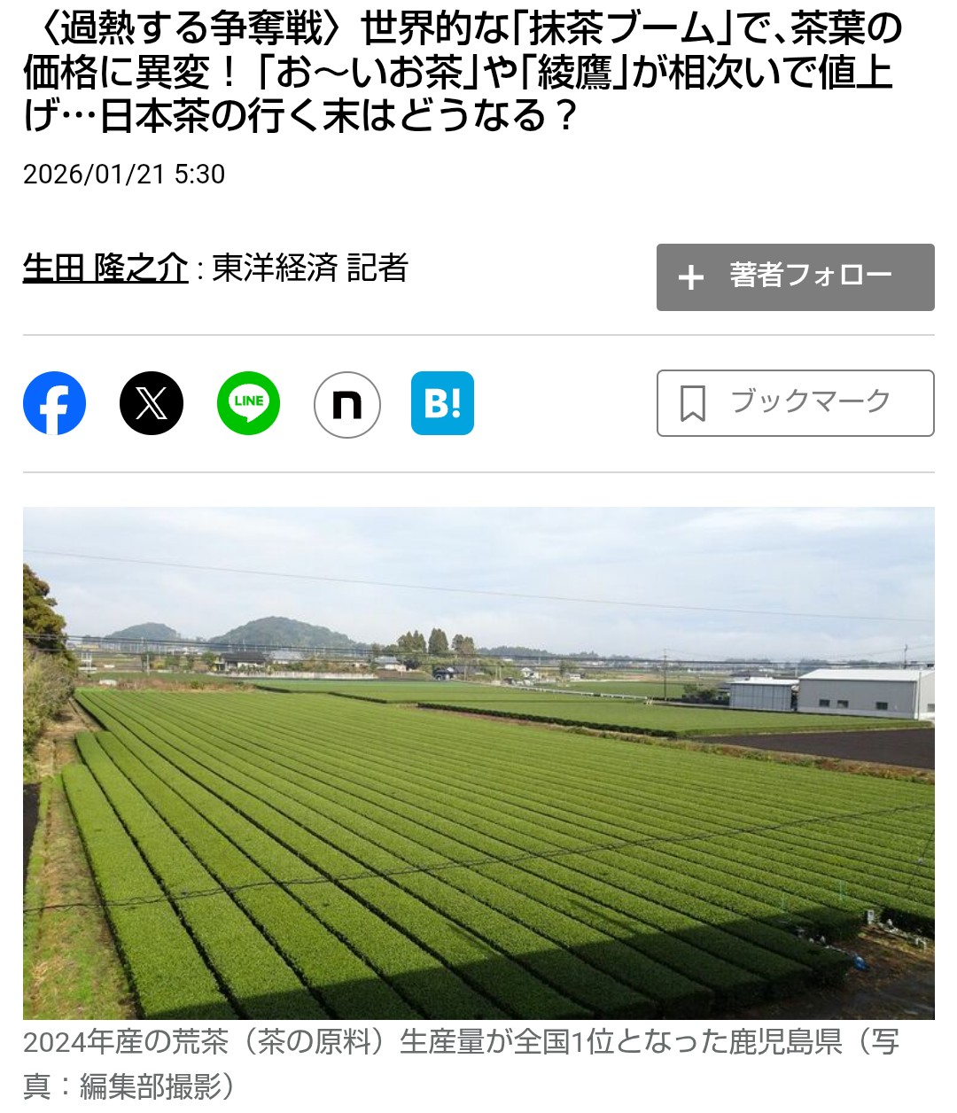 世界で抹茶が大ブームなんだと、髙市総理は早速何かやるのかな?