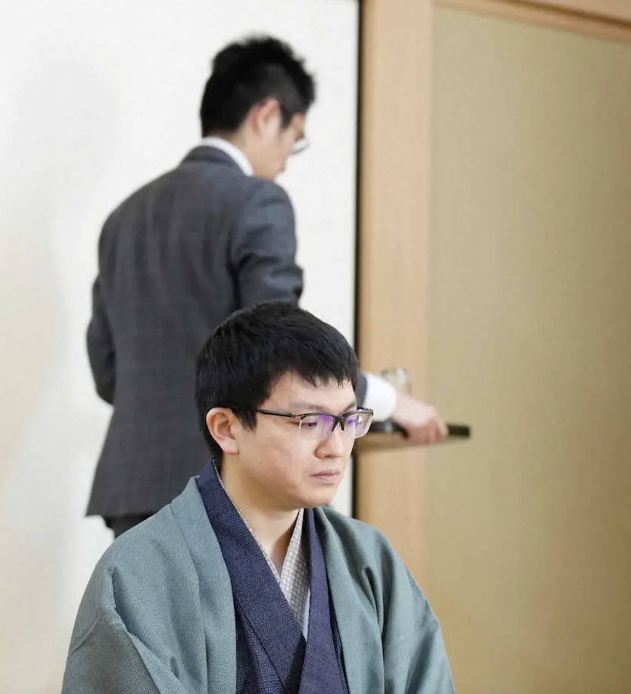 ピンチヒッターで選ばれた立会人の稲葉がお盆を手に対局室に入り、マグカップを永瀬に直接手渡した。