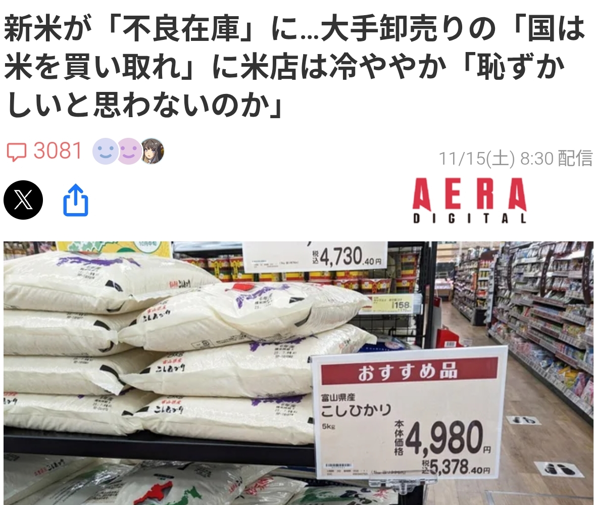 「国は価格に関わらない」と何の関与もせず、米の高止まりを定着させてるだけだろww
