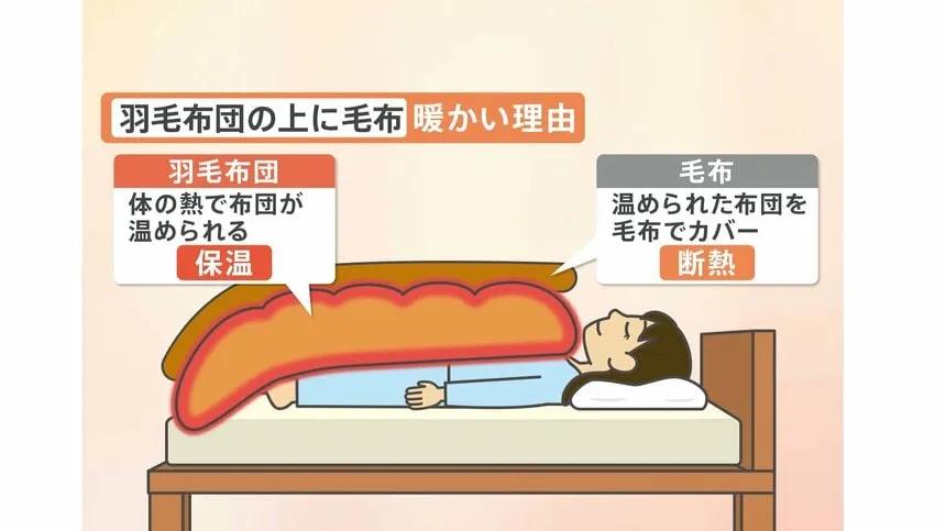 毛布で空気を遮断し、温かい空気を羽毛の中に蓄える