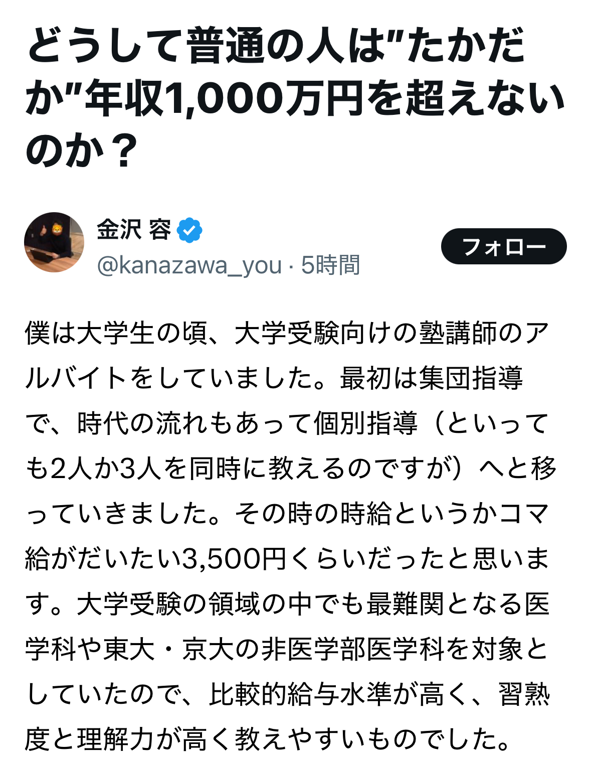 多くの人が年収1000万超えちゃったら、あなたみたいにたかだか1000万超えた程度で自慢できなくなっちゃうでしょ