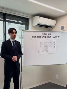 池田運送に大卒新入社員14名が入社しました。 数ある会社の中から出会えたこと、 とても嬉しく思います。 まだスタートしたばかり。 会社も、新入社員も、ここから一緒に成長していきます。 それぞれの一歩が、 これからの池田運送をつくっていく。 そんな1日になりました。