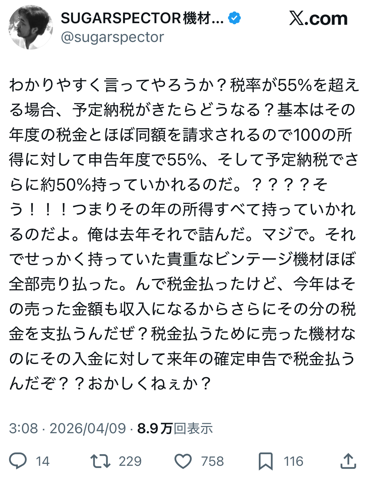 しかも所得税だけですよ