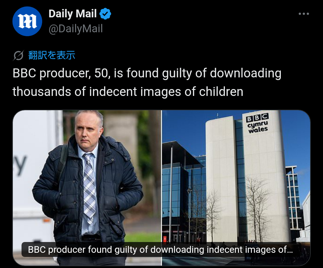 日本の漫画・アニメを児童ポルノ扱いして批判してきたBBCプロデューサー50歳、子供のわいせつ画像数千枚のダウンロードで有罪判決