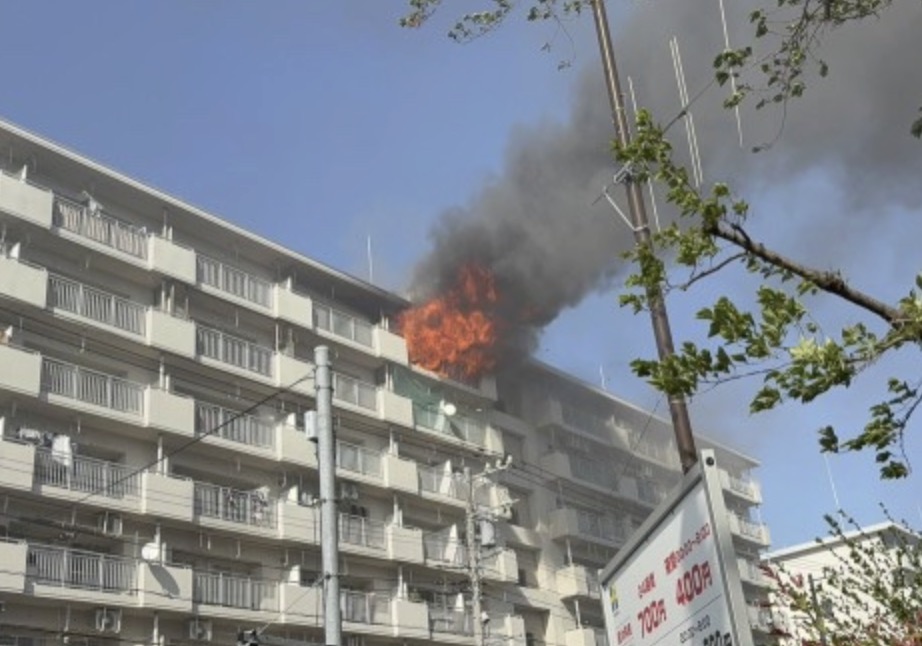 八王子市中野山王3丁目付近 都営アパート建物から炎