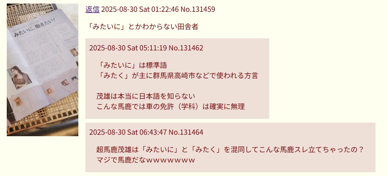 返信 2026-03-18 Wed 15:55:57 No.144918「みたく」を馬鹿にされたのに、