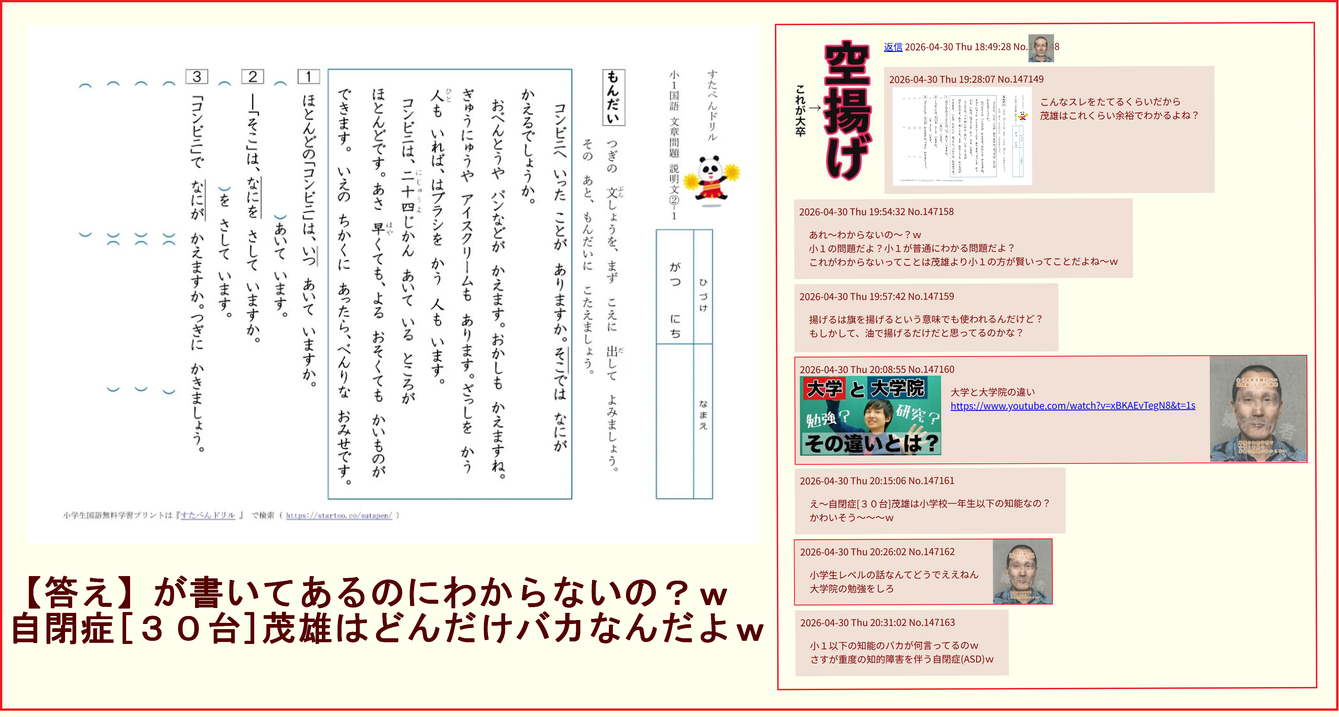 返信 2026-04-27 Mon 22:47:09 No.146820障害者ですからねw
