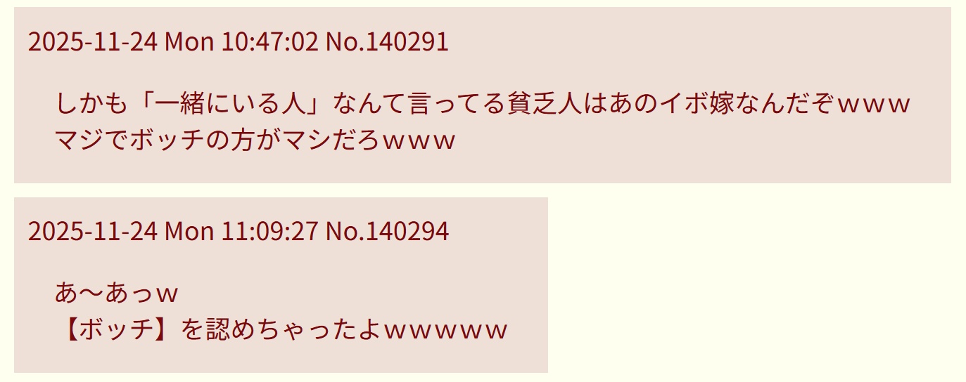 返信 2025-11-24 Mon 11:16:54 No.140299ボッチの方がマシ