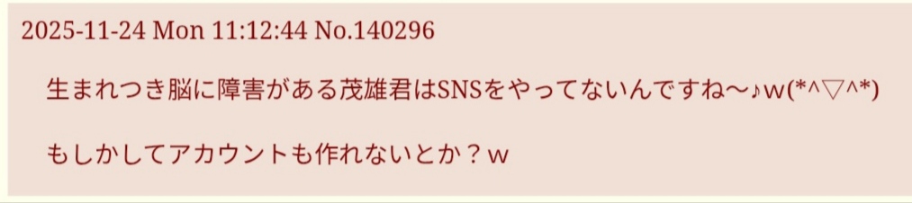 返信 2025-11-24 Mon 11:26:49 No.140308ところで茂雄いるの?