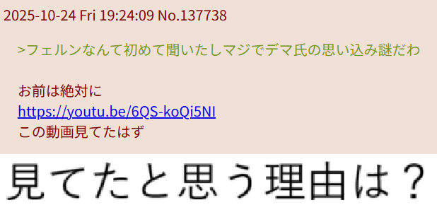 返信 2025-10-24 Fri 19:54:03 No.137773理由は「そう思うだけ」