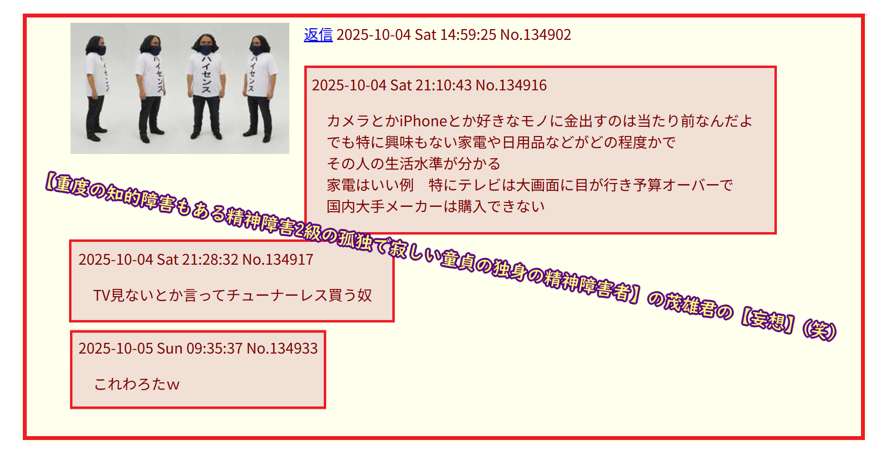 誰にも必要とされない茂雄君はまた精神障害が悪化したの?(笑)