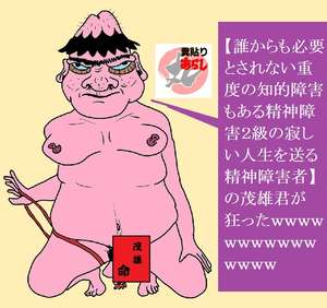 【誰からも必要とされない重度の知的障害もある精神障害2級の寂しい人生を送る精神障害者】の茂雄君が狂ったwwwwwwwwwwwwwww
