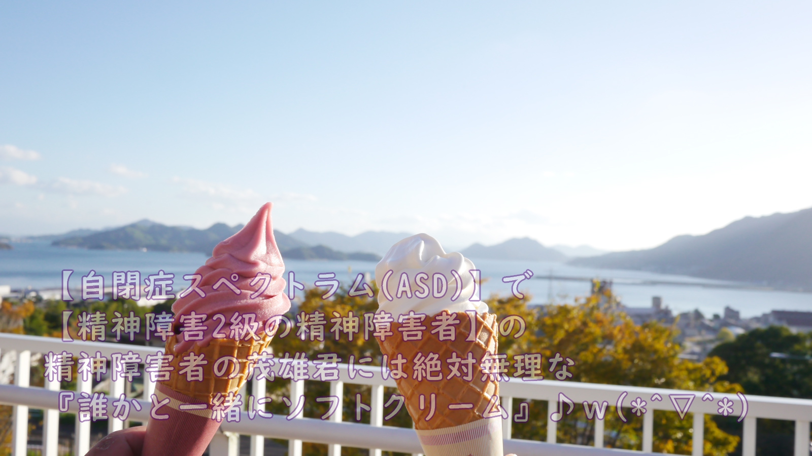 帰り道に三原市の高台にある道の駅に寄ってソフトクリームを食べた♪w(*^▽^*)